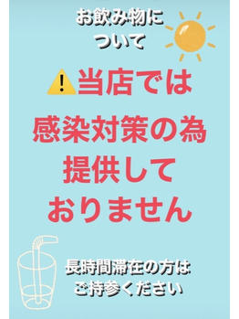 GREEN PEACE blog · 05日 8月 2021 当店でのお飲み物の提供について いつもご利用頂きましてありがとうございます! 遂に夏を迎え暑い毎日が続いておりますが、ご来店下さる皆様へご案内です。 当店では新型コロナウィルス感染対策の為、お飲み物の提供を中止させて頂いております。 その為当店ではお飲み物のご用意がなく、熱中症対策としてお飲み物のご持参をお願いしております。 お客様にはご迷惑をおかけ致しますが、何卒よろしくお願い致します。 tagPlaceholderカテゴリ: